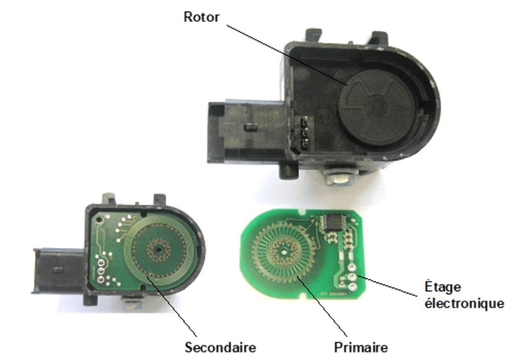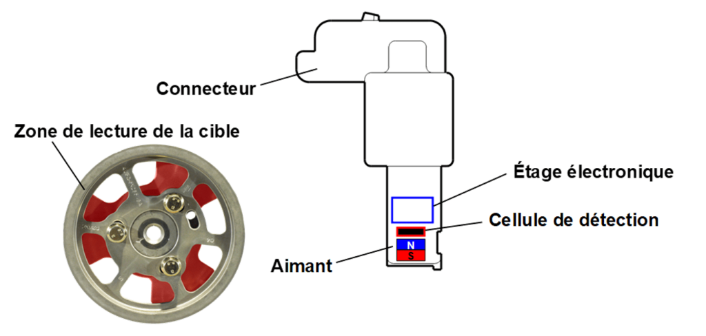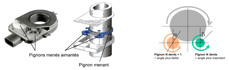 deux éléments Magnéto-résistifs détectent la valeur du déphasage de chacun des pignons menés