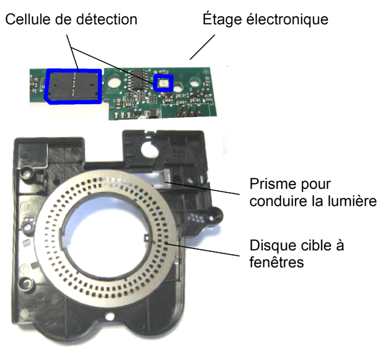 plusieurs diodes réceptrices qui détectent les impulsions lumineuses