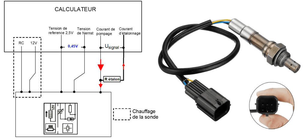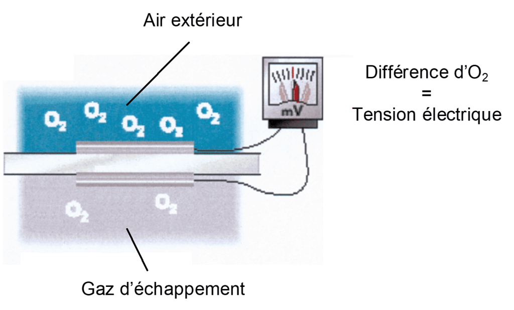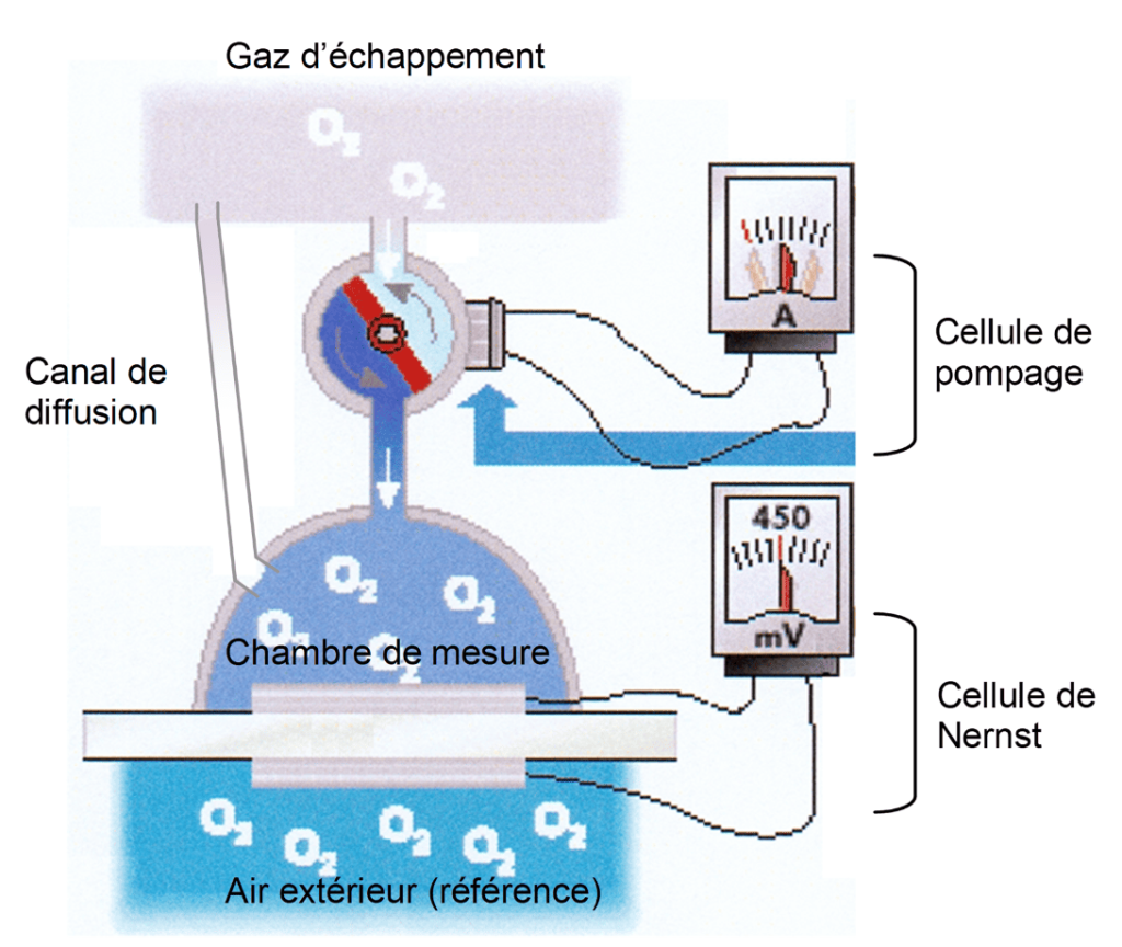 • La cellule de Nernst mesure la teneur en oxygène entre l’air extérieur et les gaz d’échappement dans la chambre de mesure