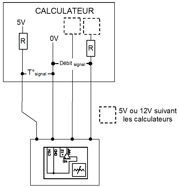 Thermistances supplémentaires pour donner le sens du flux.