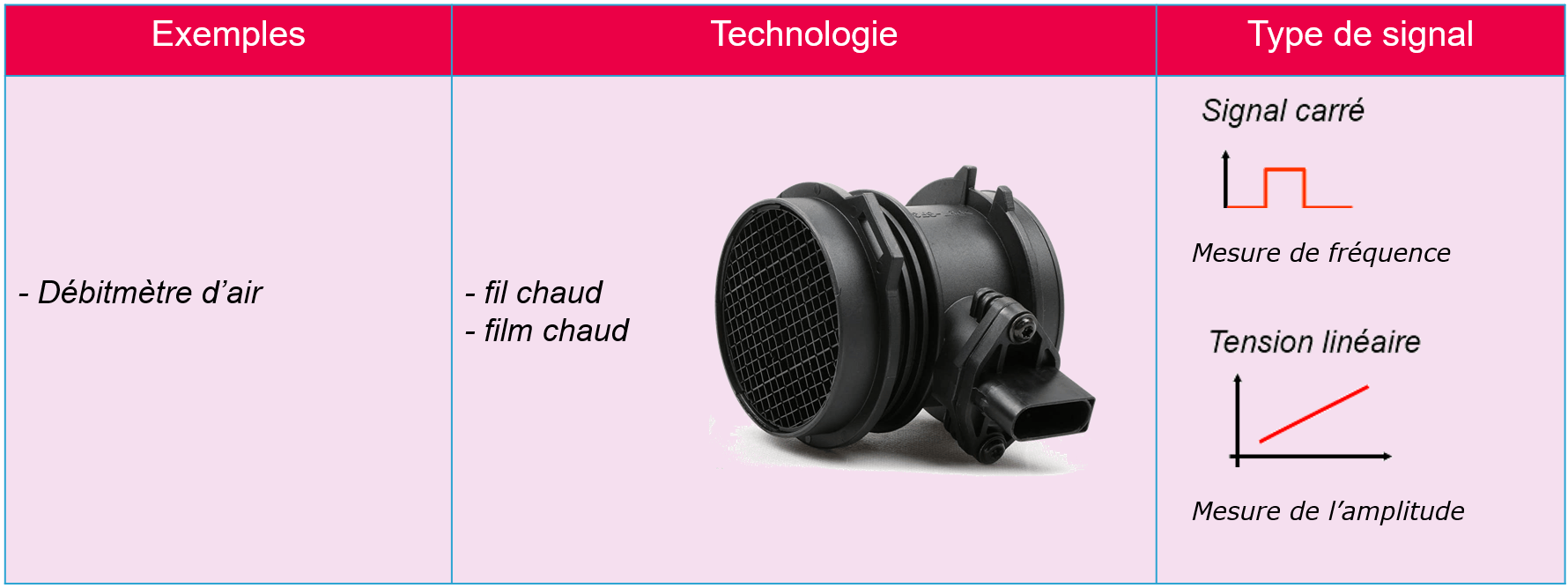Exemples de branchement d’un dĂ©bitmĂštre d’air massique
