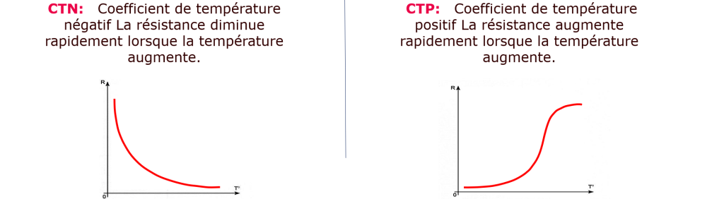 • Si la rĂ©sistance diminue quand la T° augmente, on parle de CTN