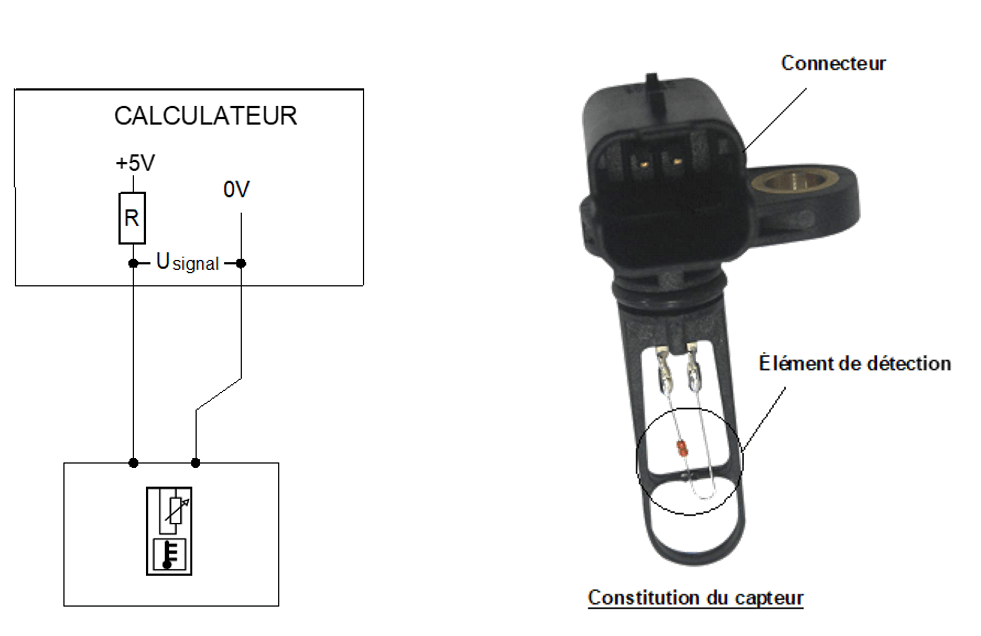 Une sonde de température est un capteur chargé de mesurer la température d’un élément du véhicule (air, liquide de refroidissement, gaz d’échappement…). Elle envoie cette information au calculateur moteur, qui ajuste ensuite les paramètres essentiels du fonctionnement moteur : injection, allumage, ralenti, ventilateur…
